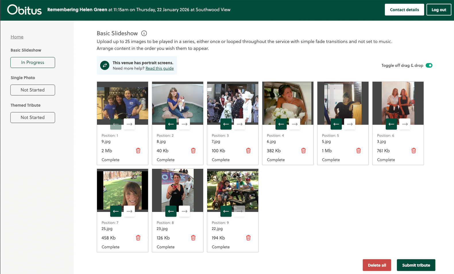 Once satisfied, click the ‘Submit tribute’ button. Ensure you submit your images by the upload deadline.